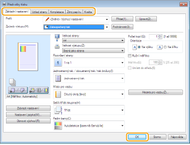 Podle potřeby zadejte nastavení tisku a klikněte na [OK].
