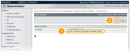 Vyberte možnost [Klíč a žádost o podepsání certifikátu (CSR)] a klikněte na tlačítko [OK].
