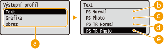 Vyberte typ obrazových dat, pro která chcete změnit nastavení. Vyberte <Text> pro znaky, <Grafika> pro čáry a číslice nebo <Obraz> pro obrázky, například fotografie.