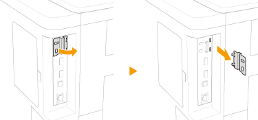 2 | Åbn dækslet til SD-kortåbningen og fjern det i den retning, der er angivet af pilen. ![]() |