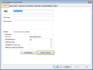 Klik på [Udskriv testside] på fanen [Generelt].