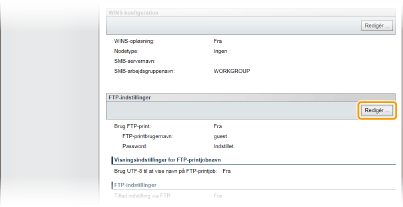 Klik på [Redigér] i [FTP-indstillinger].