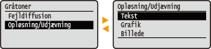 Brug pilene nedenfor for at angive indstillinger og justere værdier.