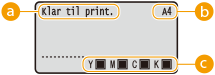 ![]() | Displayet viser udskrivningsstatus og skærmene til angivelse af indstillinger. Det viser også fejlmeddelelser og status for tonerpatronen. |