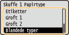 Vælg en af <Skuffe 1 Papirtype> til <Skuffe 5 Papirtype>, og tryk på