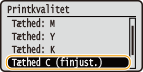 Når <Tonerbesparelse> er angivet til <Til>, kan du ikke bruge denne justeringsfunktion. Tonerbesparelse |