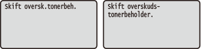 Du kan kontrollere status for affaldstonerbeholderen via <Stat., oversk.toner> under <Info om forbr.stof.>. Det anbefales, at du kontrollerer det, hvis du skal have en ny affaldstonerbeholder klar til brug før påbegyndelse af et stort udskriftsjob.