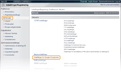 Blokering af job, når afdelings-id'et er ukendtÆndring af indstillinger for Google Cloudprinter