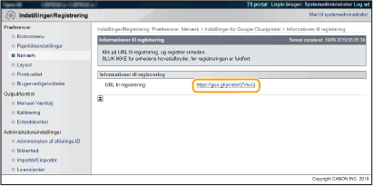Klik på linket for den URL-adresse, der er vist for [URL til registrering].