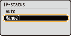 <Manuel>Vælg for at konfigurere IP-adresseindstillingerne ved manuelt at indtaste en IP-adresse.