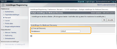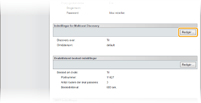 1 | Klik på [Redigér] i [Indstillinger for Multicast Discovery]. ![]() |