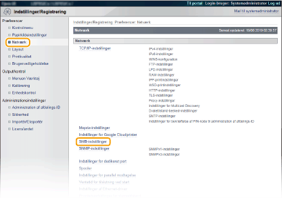 SMB (Server Message Block) er en protokol til deling af ressourcer, f.eks. filer og printere, hvor der er flere end én enhed på et netværk, og anvendes til at registrere maskinen som en delt printer på SMP-netværket.