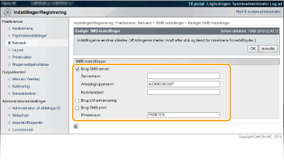 Marker afkrydsningsfeltet [Brug SMB-server], og angiv de påkrævede indstillinger.