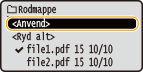 Hvis du vælger <Sortér filer> på skærmen i trin 1, kan du ændre rækkefølgen af de viste filer, når du vælger den fil, der skal udskrives. |