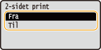 Vælg, om der skal udskrives på begge sider af papiret. Brug