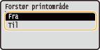 Hvis du vælger <Til>, kan nogle dele af billedet mangle nær papirets kant, eller også kan papiret afhængigt af originalen være snavset.