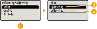 BilledtypeVælg den billedtype, der skal ændres indstilling for. <Tekst> repræsenterer bogstaver og tegn <Grafik> repræsenterer linjer og figurer, og <Billede> repræsenterer fotografier og billeder.