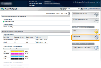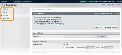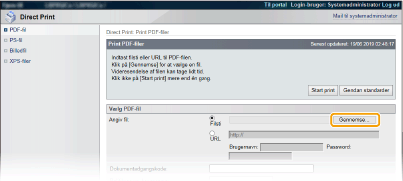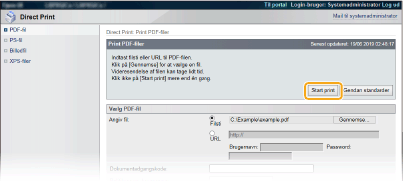 Du kan udskrive en fil fra en webbrowser (Brugerinterface til fjernbetjening) uden at åbne filen. Du kan også udskrive en PDF-fil på internettet ved at angive en internetadresse.