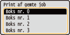Vælg boksnummeret for det dokument, der skal udskrives, og tryk på