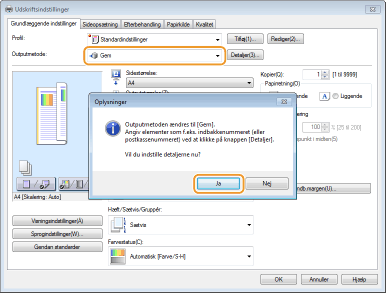 Vælg [Gem] i [Outputmetode], og klik på [Ja].