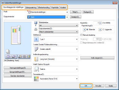 Angiv udskrivningsindstillingerne efter behov, og klik på [OK].