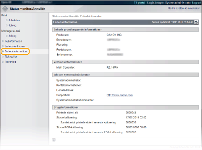 [Administrationsindstillinger] på siden [Indstillinger/Registrering] (Indstilling af systemadministratorens adgangskode).