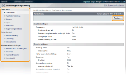 Administration af indstillinger | |