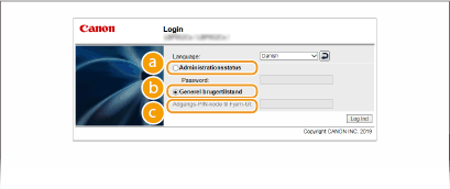 Vælg [Administrationsstatus] eller [Generel brugertilstand].