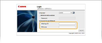 [Adgangs-PIN-kode til Fjern-UI]Hvis [Adgangs-PIN-kode til Fjern-UI] vises, skal du indtaste pinkoden (