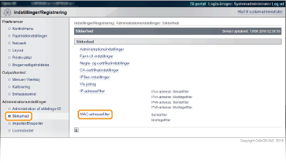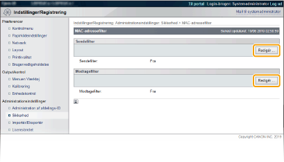 Vælg for at begrænse dataafsendelse fra maskinen til en computer ved at angive MAC-adresser.