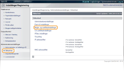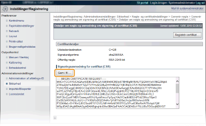 | | | [512-bit] kan ikke vælges for nøglelængden, hvis [SHA384] eller [SHA512] er valgt for [Signaturalgoritme]. |