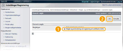 Vælg [Nøgle og anmodning om signering af certifikat (CSR)], og klik på [OK].