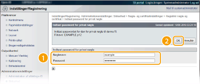 Angiv navnet på nøgleparret og adgangskoden, og klik derefter på [OK].