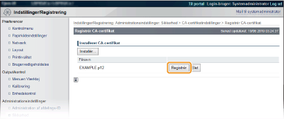 Klik på [Registrér nøgle og certifikat] eller [Registrér CA-certifikat].