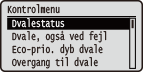 Niveauer for dvaletilstandBesparelsen af strømforbruget er mindre med <Med. (printerdvale)> og større med <Høj (dyb dvale)>. Hvis du anvender hjælpeprogrammer relateret til et netværkHvis du indstiller dvaletilstand til <Høj (dyb dvale)>, kan der ske fejl under programmernes kommunikation. |