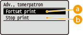 <Fortsæt print> eller <Stop print>