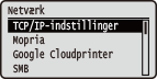 Hvis <Netværk> ikke visesHvis <Netværk> under <Grænsefladevalg> er indstillet til <Fra>, vises <Netværk> ikke i opsætningsmenuen. Grænsefladevalg Asterisk (*)Indstillinger markeret med en asterisk (*) bliver ikke vist afhængigt af den anvendte model, funktioner eller andre indstillingspunkter. |