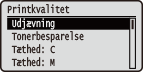 | Indstillinger om udskrivningskvalitet, herunder gradering og tonertæthed, vises med korte beskrivelser. Standardindstillingerne er angivet med en daggert (  ). |