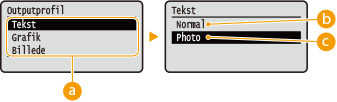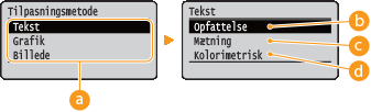 Vælg billeddatatypen for hvilke, indstillingerne er blevet ændret. Vælg <Tekst> for tegn, <Grafik> for linjer og figurer, eller <Billede> for billeder som f.eks. fotografier.