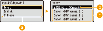 Tekst sRGB v3.0 (Canon)  Canon HDTV gamma 1.5 Canon HDTV gamma 1.8 Canon HDTV gamma 2.4 Grafik sRGB v3.0 (Canon)  Canon HDTV gamma 1.5 Canon HDTV gamma 1.8 Canon HDTV gamma 2.4 Billede sRGB v3.0 (Canon)  Canon HDTV gamma 1.5 Canon HDTV gamma 1.8 Canon HDTV gamma 2.4 |