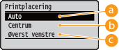 Hvis TIFF-dataene indeholder informationer med angivelse af udskrivningsplacering, udskrives billedet i henhold til informationerne, og ellers udskrives det i midten af papiret. JPEG-data udskrives altid i midten af papiret.