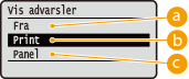 Vælg, om der skal udskrives e-mailmeddelelser, hvis der udføres Udskrivning Af E-mail. Hvis du vælger <Fra>, kan der kun udskrives billeder, der er vedhæftet e-mailen.