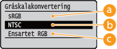 Der anvendes en RGB-profil, der tilsvarer den gennemsnitlige profil for de fleste skærme til Windows-computere. Ved brug af en skærm, der understøtter sRGB, kan du udskrive farver, der er tættere på de farver, der vises på monitoren.