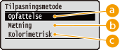 Asterisk (*)Indstillinger markeret med en asterisk (*) bliver ikke vist afhængigt af den anvendte model, funktioner eller andre indstillingspunkter. |