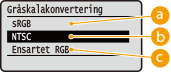 Der anvendes en RGB-profil, der tilsvarer den gennemsnitlige profil for de fleste skærme til Windows-computere. Ved brug af en skærm, der understøtter sRGB, kan du udskrive farver, der er tættere på de farver, der vises på monitoren.