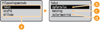 Vælg billeddatatypen for hvilke, indstillingerne er blevet ændret. Vælg <Tekst> for tegn, <Grafik> for linjer og figurer, eller <Billede> for billeder som f.eks. fotografier.