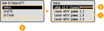 Tekst sRGB v3.0 (Canon)  Canon HDTV gamma 1.5 Canon HDTV gamma 1.8 Canon HDTV gamma 2.4 Grafik sRGB v3.0 (Canon)  Canon HDTV gamma 1.5 Canon HDTV gamma 1.8 Canon HDTV gamma 2.4 Billede sRGB v3.0 (Canon)  Canon HDTV gamma 1.5 Canon HDTV gamma 1.8 Canon HDTV gamma 2.4 |