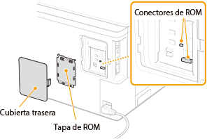 Precauciones al instalar la ROMNo deje que ningún metal, como tornillos, entre en contacto con las placas de circuito del equipo. Si lo hace, podría dañar el equipo. No toque los componentes internos, el cableado impreso, los conectores ni los interruptores. De lo contrario, podrían producirse daños en el equipo. No encienda el equipo si la tapa de la ROM está abierta. Si lo hace, se podría dañar el equipo. Precauciones para evitar electricidad estáticaLa ROM contiene piezas sensibles a la electricidad estática. Observe las precauciones siguientes para evitar que la ROM se dañe por la electricidad estática. Toque algún objeto metálico de la estancia para descargar la electricidad estática de su cuerpo antes de manipular la ROM. Durante el proceso, no toque ningún objeto susceptible de generar electricidad estática, como una pantalla. Para evitar la influencia de la electricidad estática, no extraiga la ROM de su embalaje hasta justo antes de conectarla a los conectores de la ROM. |