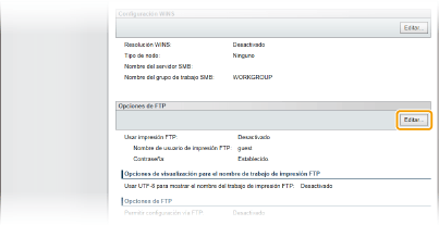 Haga clic en [Editar] en [Opciones de FTP].
