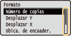 Puede especificar diversas opciones relacionadas con la pantalla, como el ajuste de pantalla y el idioma de visualización, mediante <Menú Control> en el menú de configuración del panel de control. Menú Control |